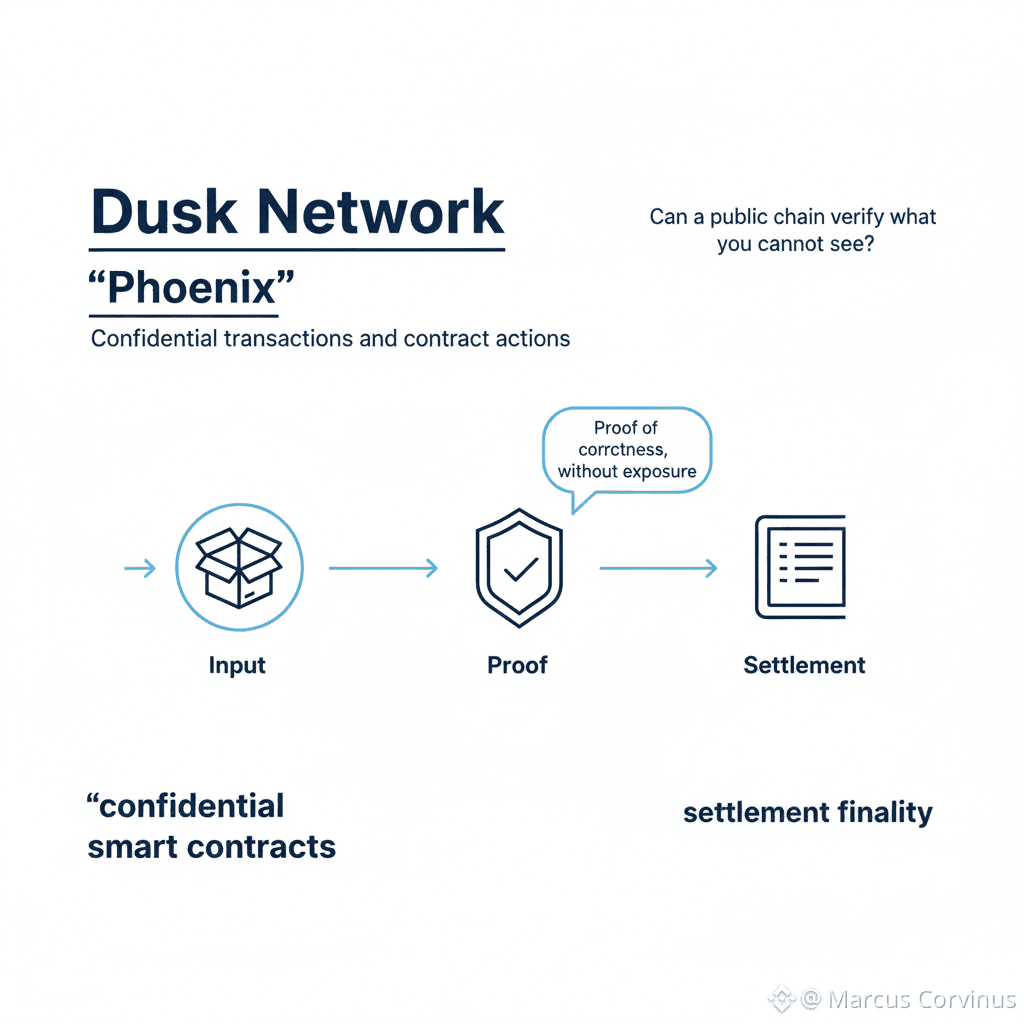 The project centers itself on "confidential smart contracts", which sounds abstract until you slow down and think about what contracts actually do. A smart contract is where decisions happen. It is where conditions are checked, balances are updated, and rules are enforced. On most chains, all of that logic runs in public. Dusk takes a different path. The idea is that a contract should be able to execute correctly while keeping sensitive inputs private, then produce proof that the rules were followed. The chain learns that something valid happened, without learning everything about how it happened. That single shift changes what is possible.