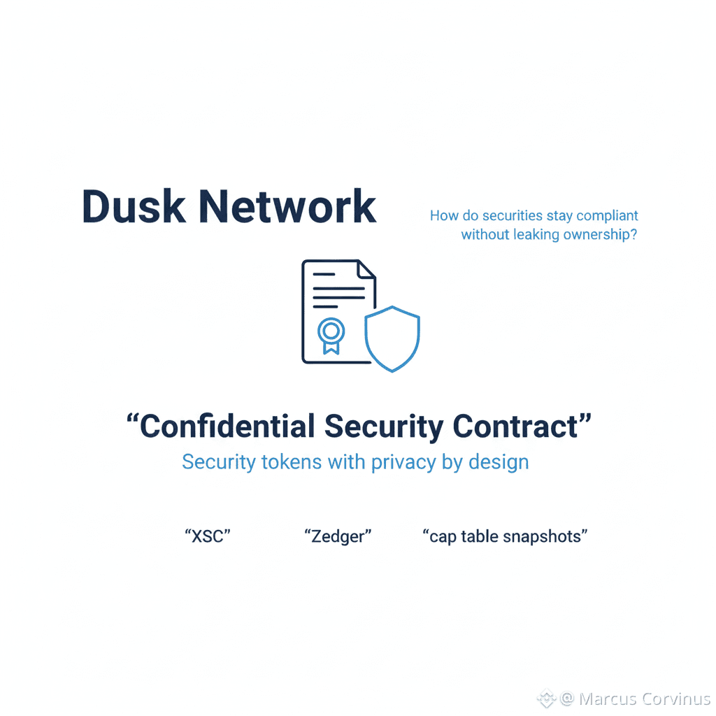 On top of this sits the "Confidential Security Contract" standard, known as "XSC". Standards are not exciting, but they are how systems survive. In finance, repetition is safety. Issuers want predictable behavior. Platforms want consistent logic. Reviewers want familiar structures. XSC is designed to standardize how privacy enabled security tokens are issued and managed on Dusk Network. It reduces the chance of fragile custom designs and makes it easier to reason about compliance and lifecycle behavior. If every security token behaves differently, risk multiplies. A standard reduces that risk.