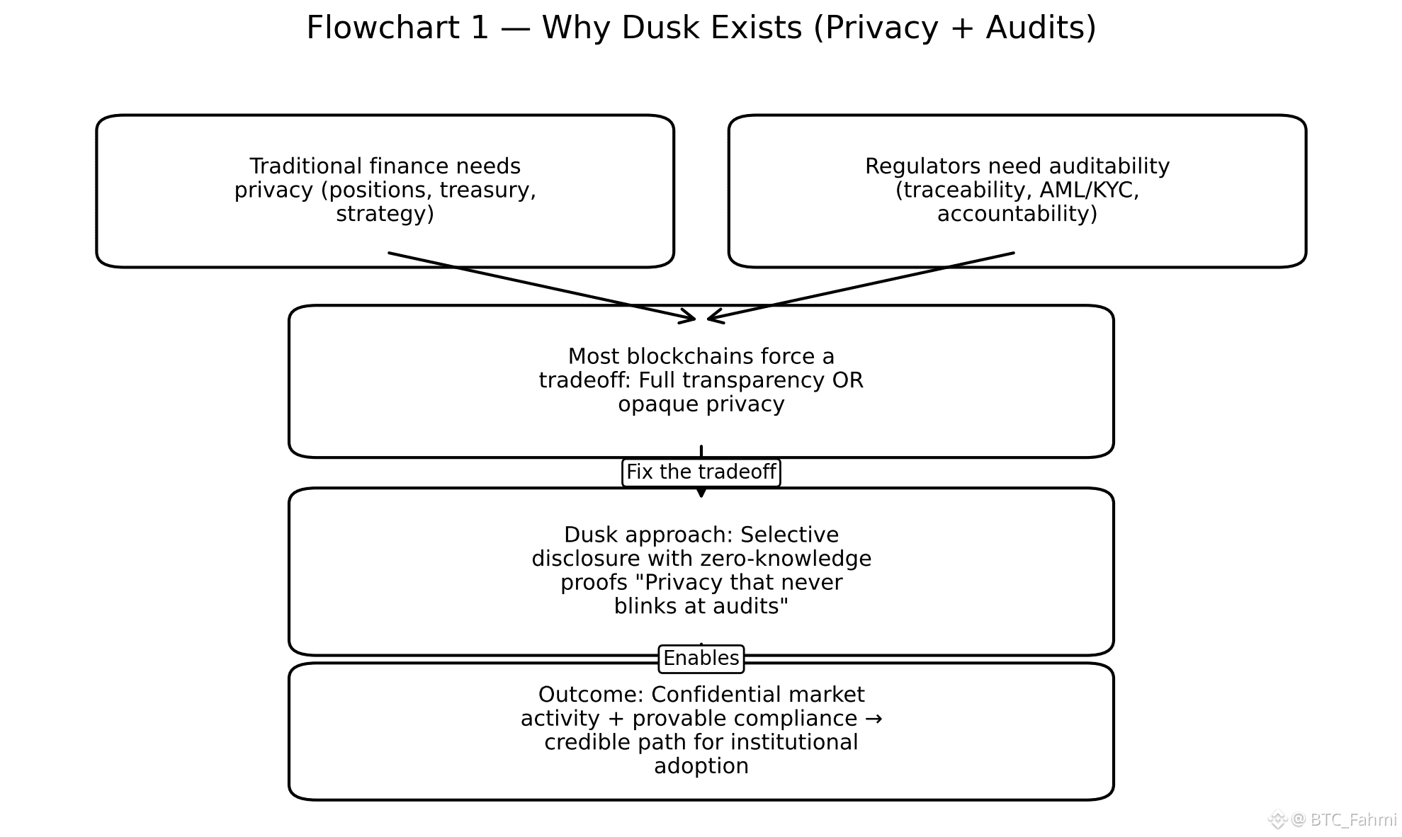That’s why the line “Privacy that never blinks at audits” is such a sharp way to describe Dusk. It’s not a promise of invisibility. It’s a design goal: confidentiality where markets need it, with the ability to prove things when oversight demands it. And for traders and investors, that distinction matters more than most people realize, because it points directly to where adoption could realistically happen.