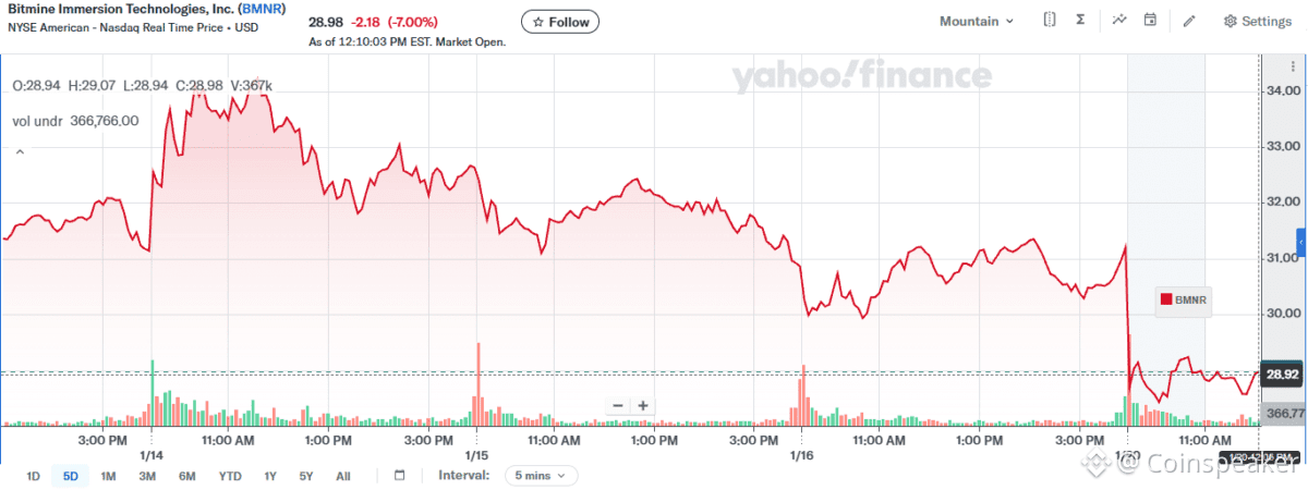 On January 20, following the shareholder announcement, BMNR shares declined intraday, with the reported close 8% lower at $28.35, and volume near 26,490,000 shares, below its 44.9 million average, according to Yahoo! Finance. Over the past year, BMNR has seen significant volatility, trading from $3.20 to $161, reflecting crypto market swings and treasury announcements.