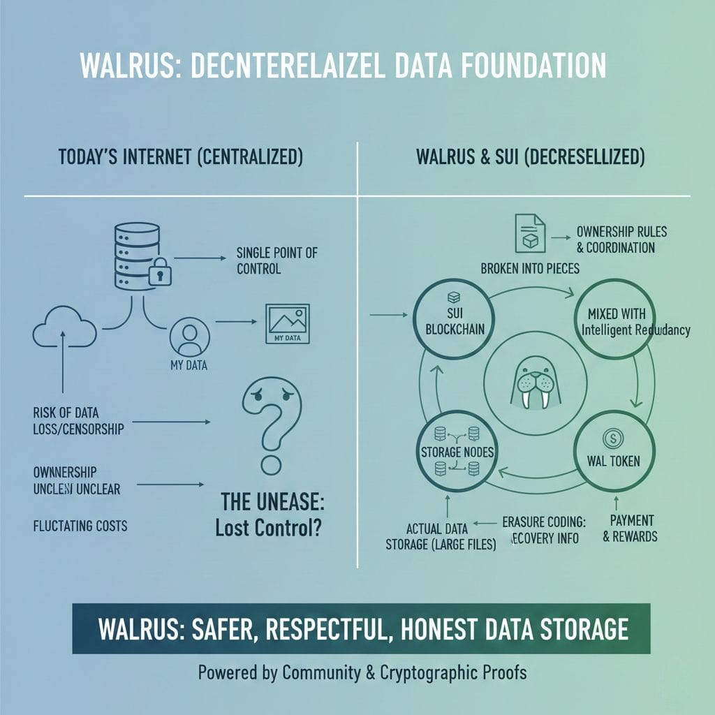 A photo a project a memory something you worked hard on It lives somewhere far away owned by someone else under rules you did not write Walrus begins right there with that feeling and asks a gentle question What if storing data felt safer more respectful and more honest