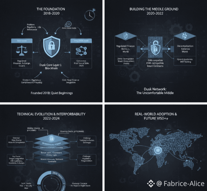 @Dusk Network is not a blockchain designed to stand out through noise or hype. Launched in 2018, the project began with a narrow but difficult problem: how can blockchain technology be applied to real financial markets without conflicting with existing legal and regulatory frameworks? Most blockchains emphasize openness and complete transparency, but traditional finance operates very differently. Financial institutions require privacy, identity verification, controlled data access, and verifiable audit processes. Dusk was created to operate precisely at this intersection, where decentralization must coexist with regulation.
