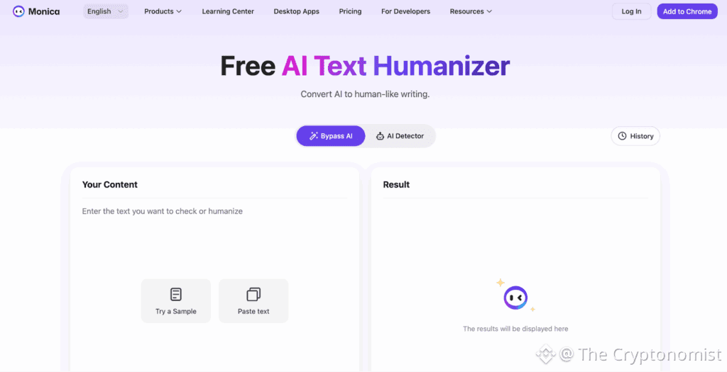 Monica Humanizer focuses on simplicity and speed. Its interface is straightforward, and processing times are short, making it suitable for quick edits or low-risk content.