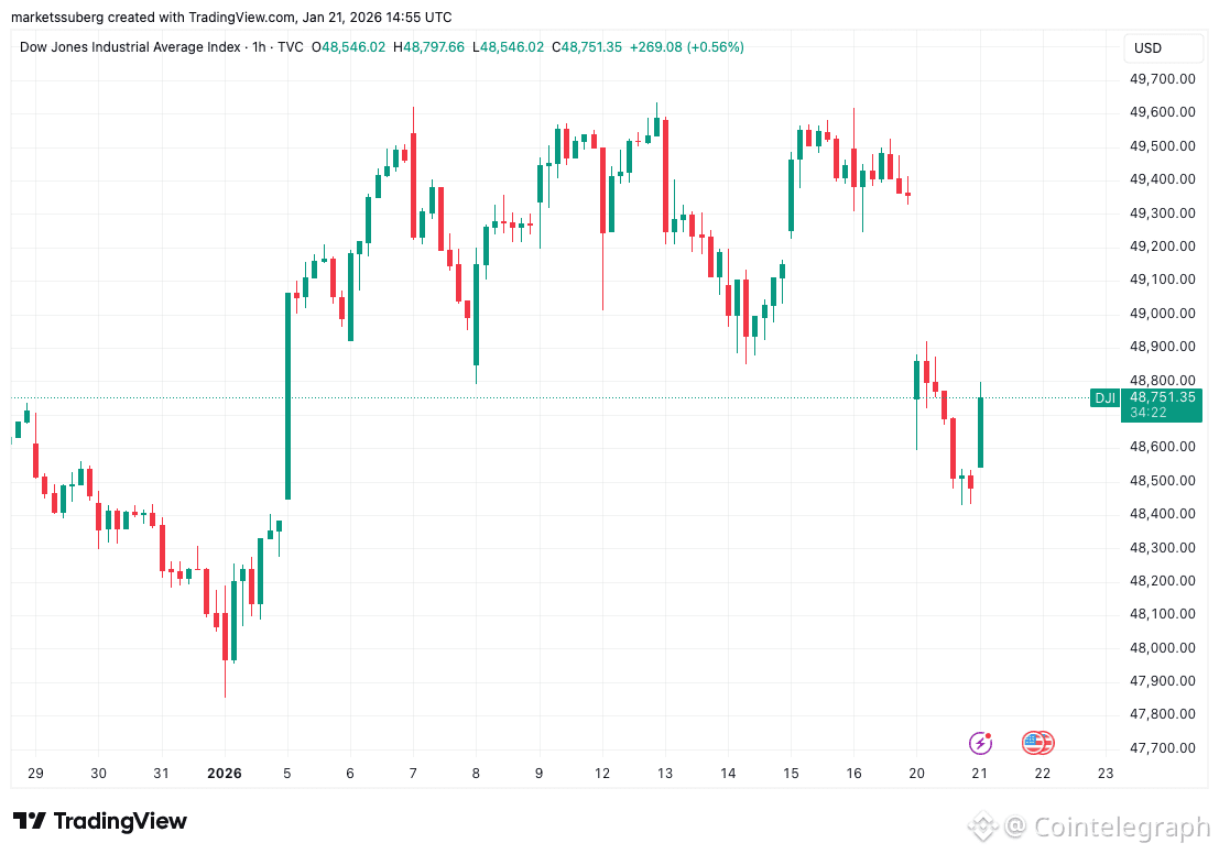 Dow Jones Industrial Average one-hour chart. Source: Cointelegraph/TradingView