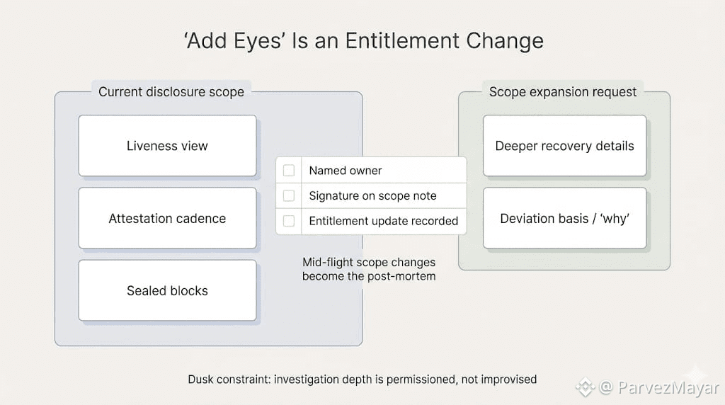 So the recovery engineer does the only safe thing... keep correctness intact, write the deviation down, dont widen anything mid-flight. You do not want the post-mortem to become "why did you expand disclosure', when the committee never stopped ratifying.
