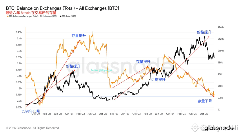 不论 BTC 涨,还是跌,都有更强的购买力来买入 BTC ,这代表的就是投资者的情绪,投资者相信 BTC 的未来,所以愿意积极的买入,而如果相反,只是认为 BTC 是短期投机的产品,比如部分现货 ETF 的投资者,那么交易所的存量是没可能减少,只会不断上涨的。