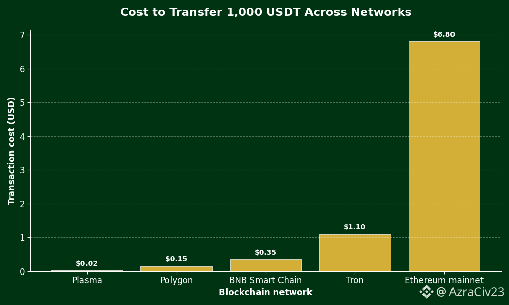 Sending 1,000 USDT on Ethereum typically costs several dollars during normal conditions. Tron is cheaper, usually around a dollar. Plasma targets near-zero transfer costs, measured in cents. This isn’t a marketing trick. Plasma was designed from the start around stablecoin flows, not smart contract congestion.