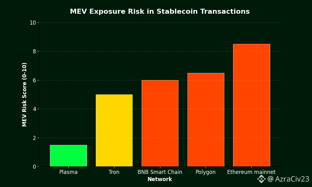Stablecoin transfers on general-purpose chains can be reordered or exploited. Plasma reduces this exposure by focusing on straightforward settlement flows instead of complex execution environments. Less extraction means more value reaches the receiver.