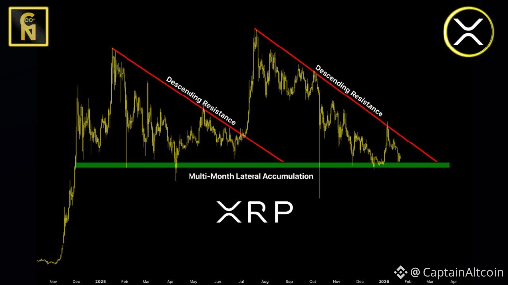 XRP price has spent months moving sideways and lower, testing patience without offering clear direction. That slow grind explains why one technical level now carries so much weight. According to analysis shared by TheCryptoBasic and highlighted by market analyst Chart Nerd, the next move for XRP price does not require complex indicators or bold assumptions. A clean break above a long standing resistance line could be enough to shift momentum.