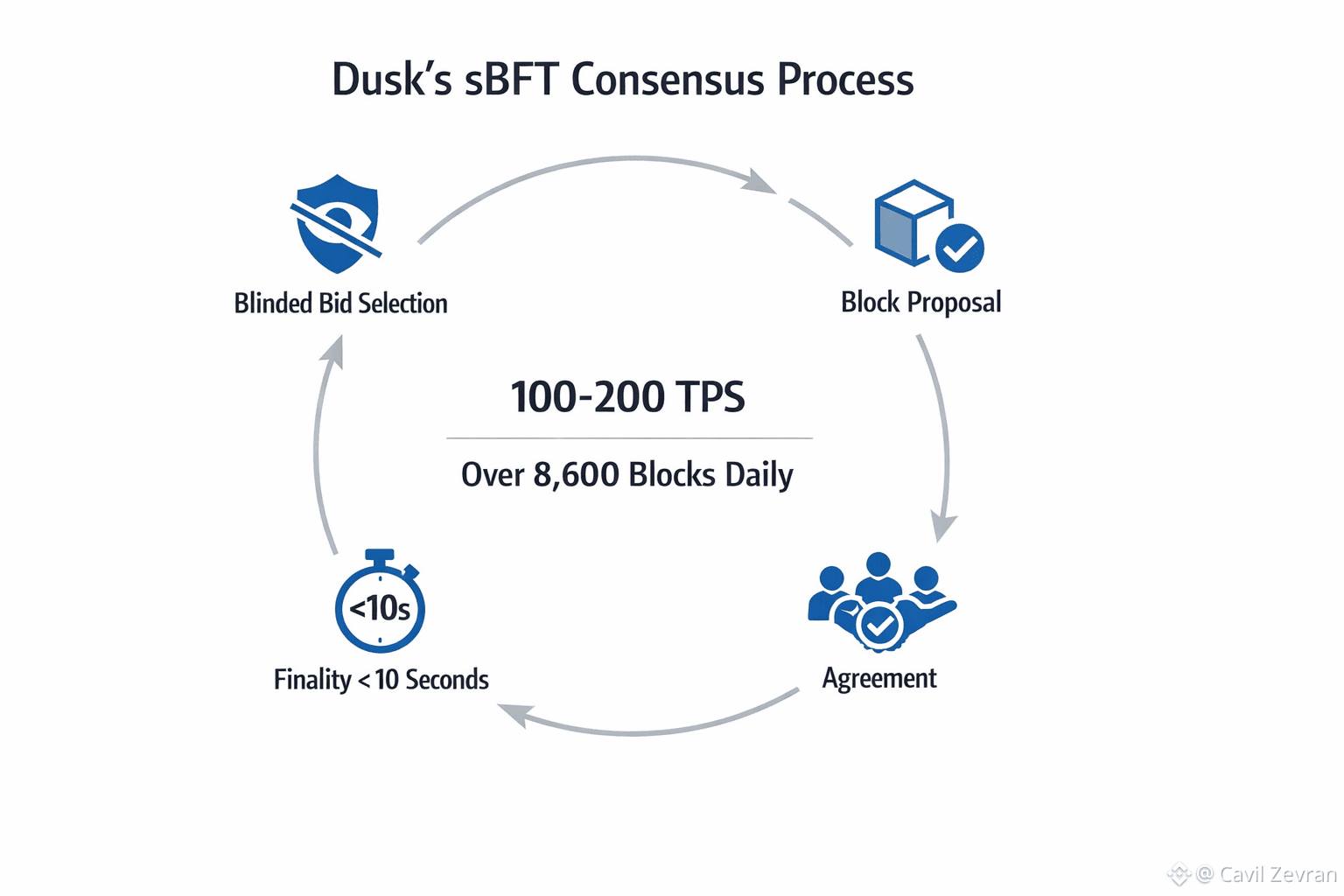 At the core of Dusk’s defense lies its Segregated Byzantine Fault Tolerance (sBFT) consensus. This isn’t your average consensus engine. It nails down finality in less than 10 seconds, pumping out over 8,600 blocks a day since going live in January 2026. Forget fragile proof-of-work or easy-to-game staking—sBFT splits up agreement steps for speed, processing 100–200 transactions per second without missing a beat. But the real genius is in its Proof-of-Blind-Bid. Block proposers get picked through secret, blinded bids, so no one can game the system or front-run blocks. That randomness makes it almost impossible for attackers to predict or hijack rounds. For apps dealing in tokenized real-world assets, this means trades settle instantly and can’t be reversed, cutting out the nightmare of million-dollar slip-ups.