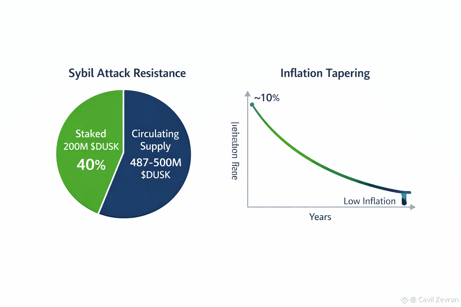 Then there’s the ContractStake system. Here, $DUSK holders lock up tokens to become Provisioners, actively protecting the network. As of mid-January 2026, more than 200 million $DUSK—about 40% of the total supply—is staked. That’s a massive shield against Sybil attacks. The protocol slashes anyone who tries to cheat or slacks off, and rewards those who help keep things running smoothly. It’s not just passive investing; stakers help govern upgrades, voting on everything from gas limits to node requirements. The community’s in charge, and it shows. With a capped supply of 1 billion and inflation dropping to around 10% a year, the system burns fees to keep inflation in check and make attacks even harder. Realistically, a 51% attack would cost so much that it’s just not worth trying. Plus, Dusk’s modular design means fixes roll out smoothly, without the chaos of forks.