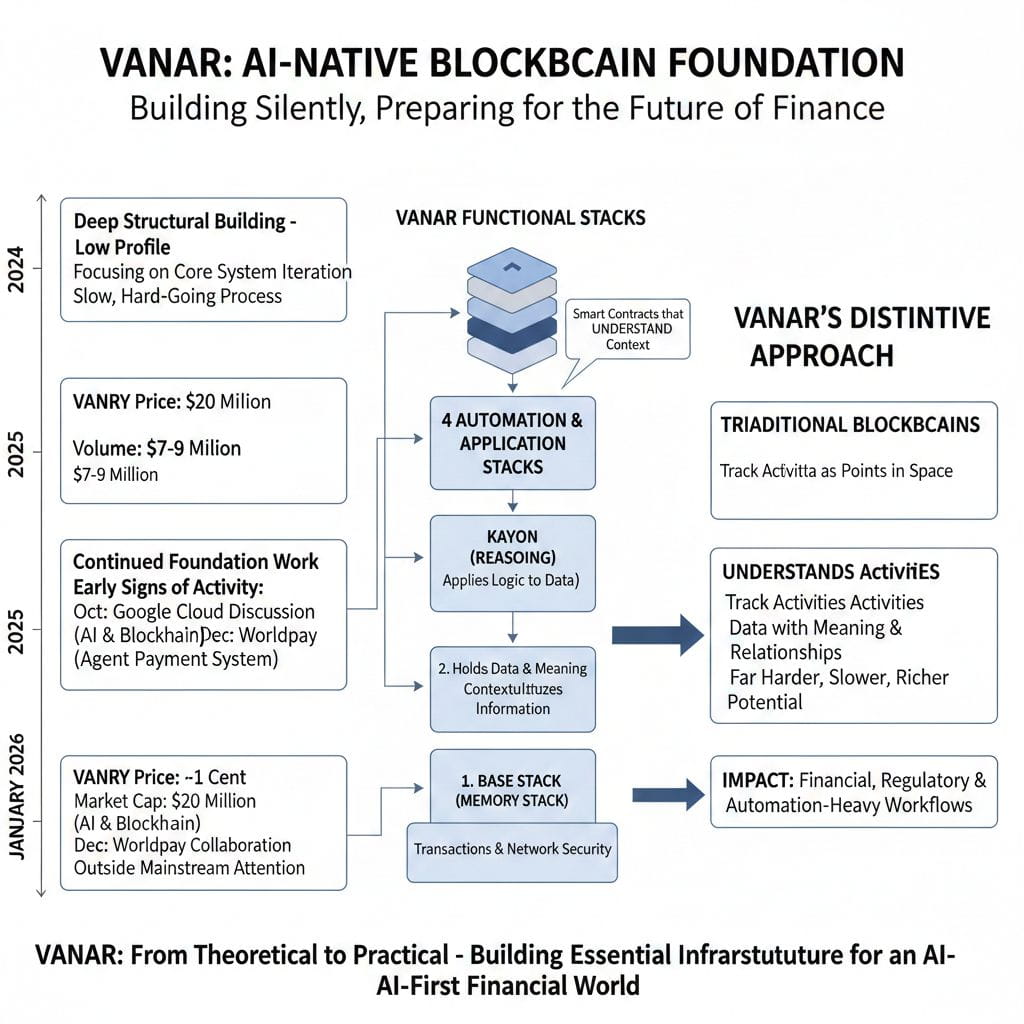Vanar began its life as a Layer 1 blockchain network, albeit one with a very different direction by the latter part of 2024. The project began positioning itself not merely as a blockchain that incorporated artificial intelligence applications, but as a blockchain system itself that is native to artificial intelligence. Again, there are subtle differences. While one approach merely attempts to integrate artificial intelligence into a blockchain system, the other builds upon a fundamentally different inner approach with regard to how data can be contextualized and advice rendered. The latter is far harder to implement, far slower, but far richer in potential.