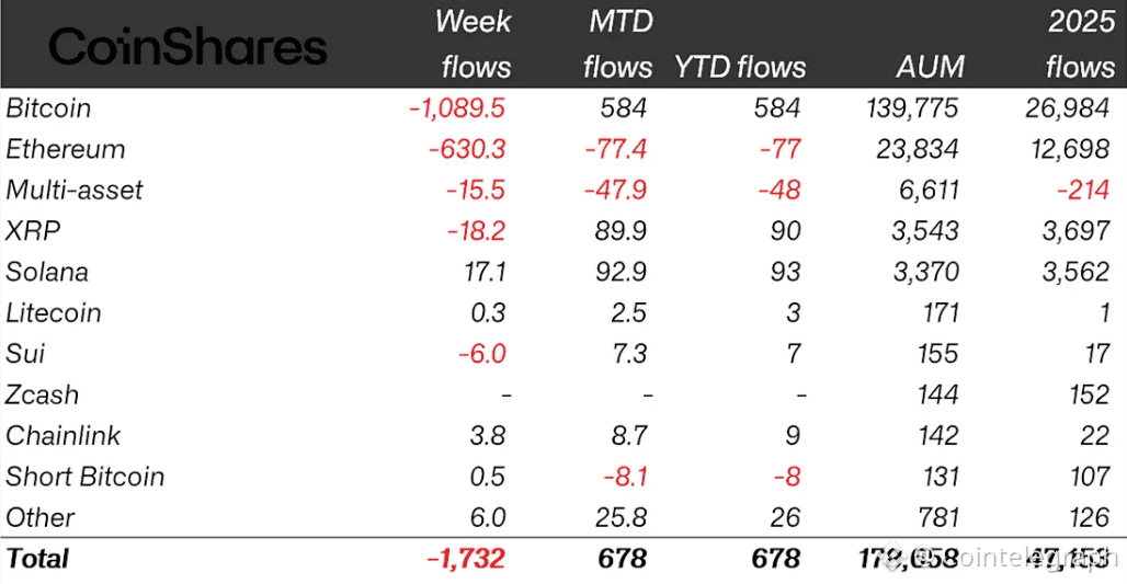 Bitcoin and Ether lead outflows with $1.72 billion combined