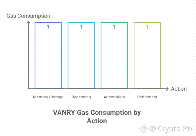 Every action uses VANRY. Memory storage burns gas. Reasoning burns gas. Automation burns gas. Settlement burns gas. Usage equals demand. Simple logic not narrative logic.