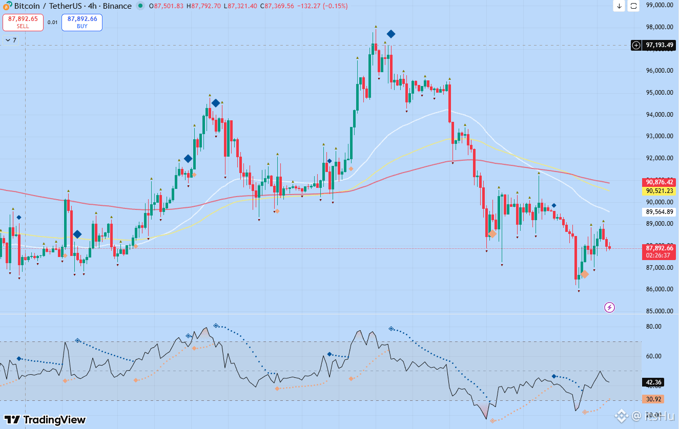 📉 Trên khung H4, Bitcoin vẫn giao dịch dưới các đường MA quan trọng, cho thấy lực mua chưa thực sự áp đảo.