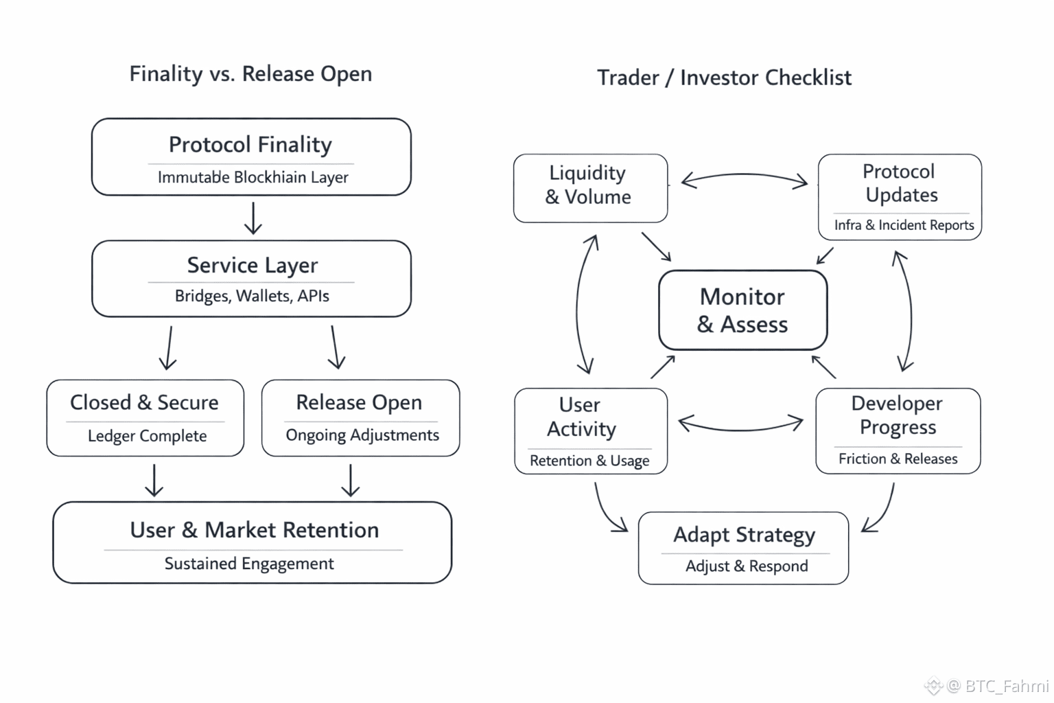 The moment people hear the word finality, they picture a door that clicks shut. Trade done. Block sealed. History fixed. In markets, that feeling is comforting because it sounds like certainty, and certainty is rare. But anyone who has watched real systems mature knows something else is true at the same time. Finality closes the ledger entry, not the work. The release can still stay open.