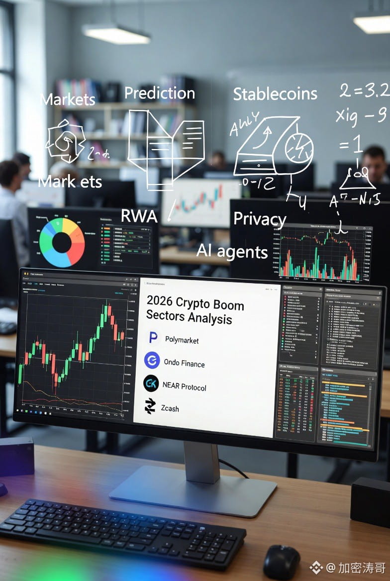 2026加密不再讲故事,而是拼真实现金流+合规+AI落地💥。以上赛道头部(Polymarket、Ondo、Circle、NEAR、Zcash等)大概率出下一个大机会,但风险极高,现金流为王!DYOR,还是别All in!