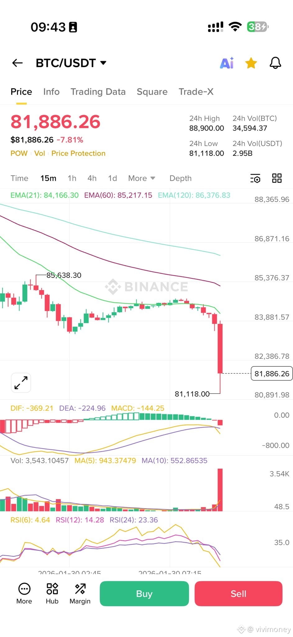 比特币短时暴跌至 81118美元,黄金白银等贵金属暴跌的话,风险市场绝对会被带崩盘,现在看,这个逻辑没错,黄金白银暴跌,没有一个市场能善终的,比特币跟着暴跌,美股也跟着暴跌。