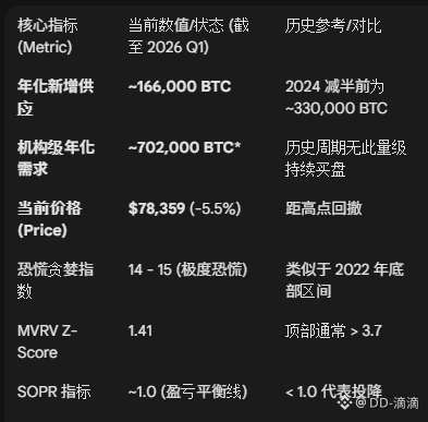 在二零二五年至二零二六年期间,比特币年化新增供给约为十六万六千枚;