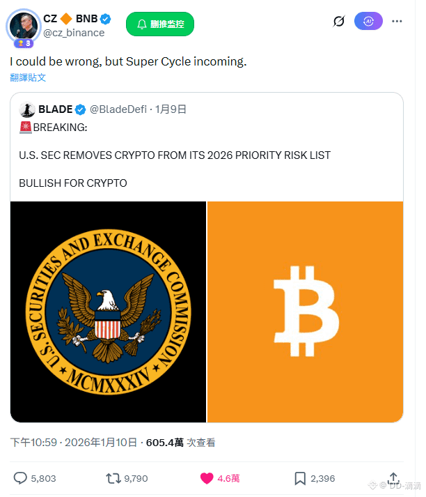 确实,在这个节点回看 CZ 数周前提出的「超级周期」说法,显得相当刺耳。