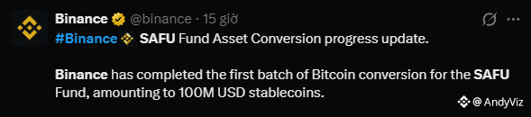 Binance just confirmed the first $100 million (approx. 1,315 BTC) deployment to convert their SAFU insurance fund from stablecoins to Bitcoin. Historically, this fund was held in USDC and USDT for liquidity. By moving 100% of the fund (roughly $1B total) into BTC, Binance is making a massive statement: Bitcoin is now liquid and safe enough to outclass digital fiat.
