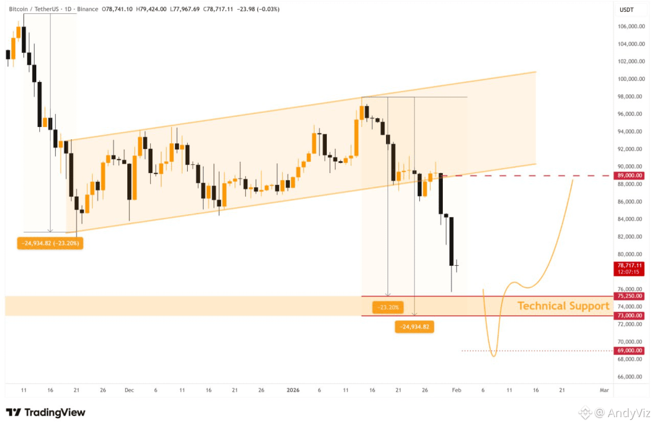 Current Range: BTC is trading roughly between $79,000 and $83,000, marking a significant retreat from its early-year momentum.
