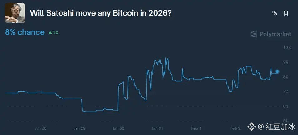 2026年,更多加密人物被曝光曾与爱泼斯坦共赴派对,预测市场上“中本聪的比特币地址在2026年出现动作”的可能性从约6%一度上升到约9.3%。