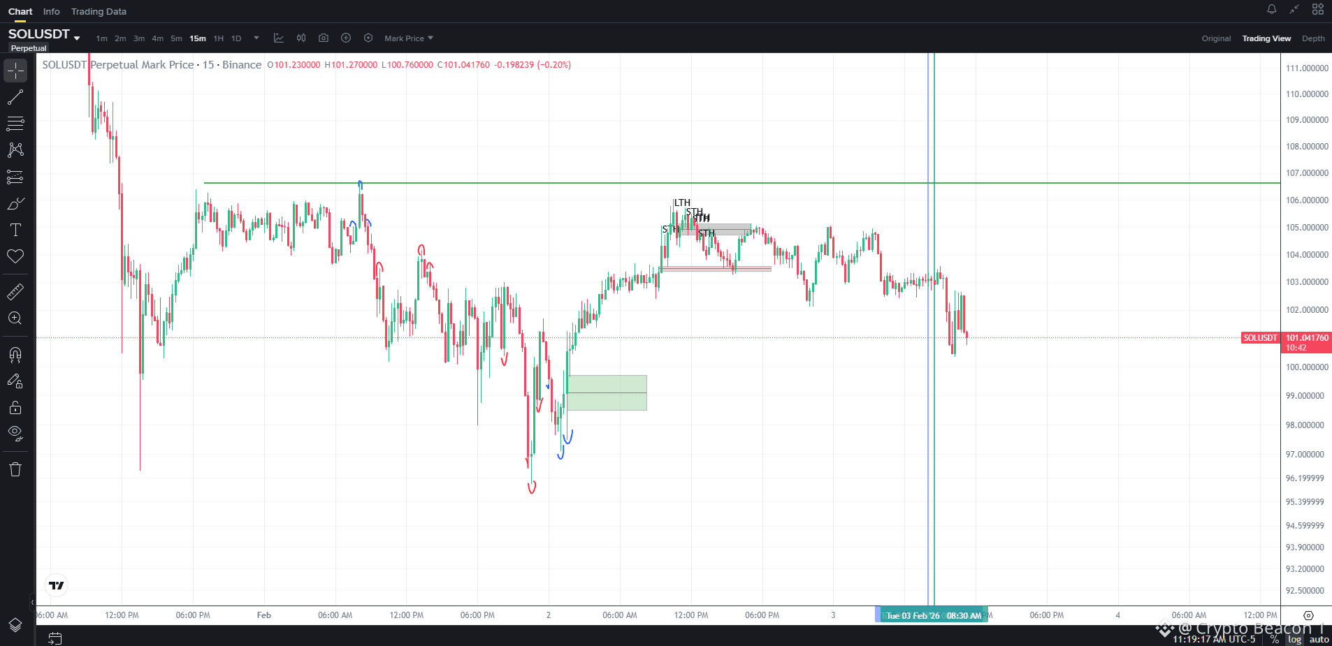 We can taken confirmation of Solana falling. For me the price of Solana will not go above 102.69$ before taking the liquidity from down below.
