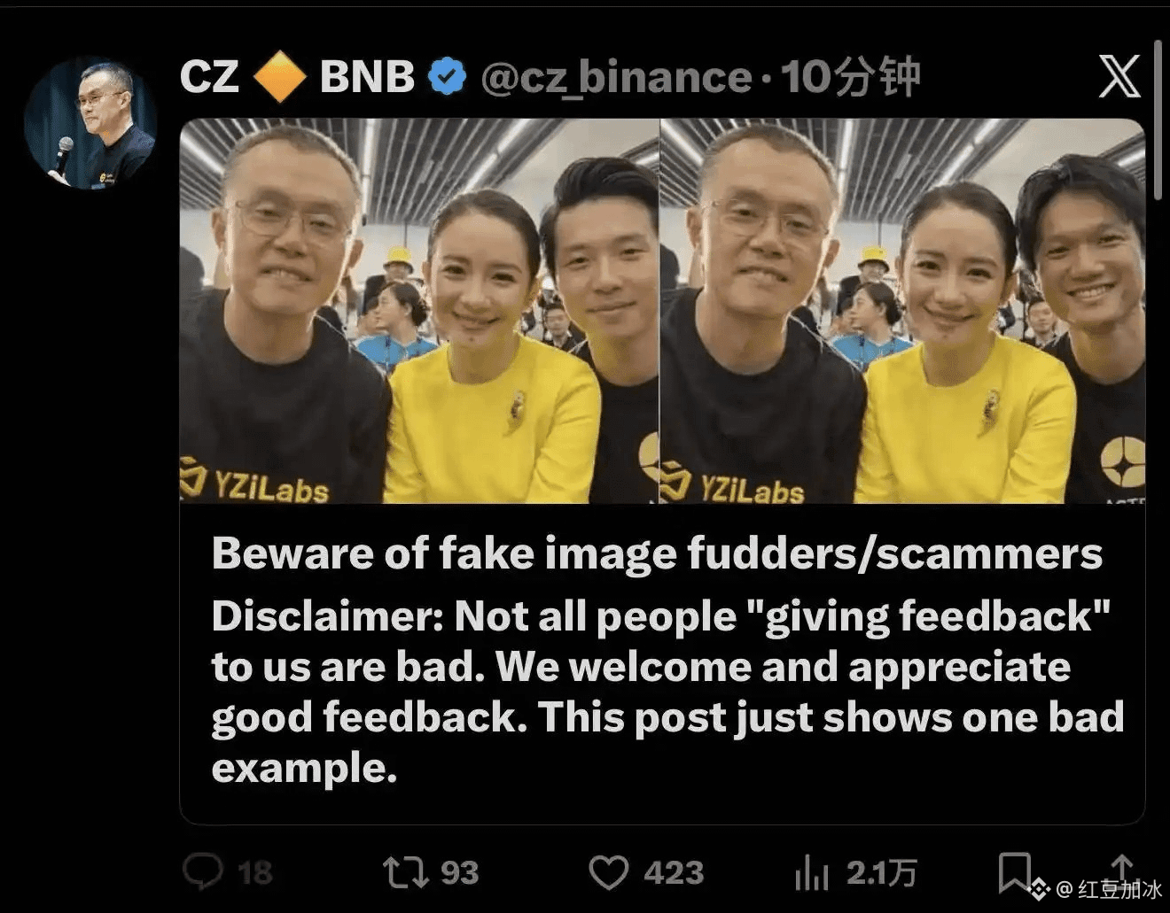 CZ在警告中特别强调:“并非所有向我们‘提供反馈’的人都是坏的。我们欢迎并感谢良好的反馈。这篇文章只是展示了一个坏例子。”