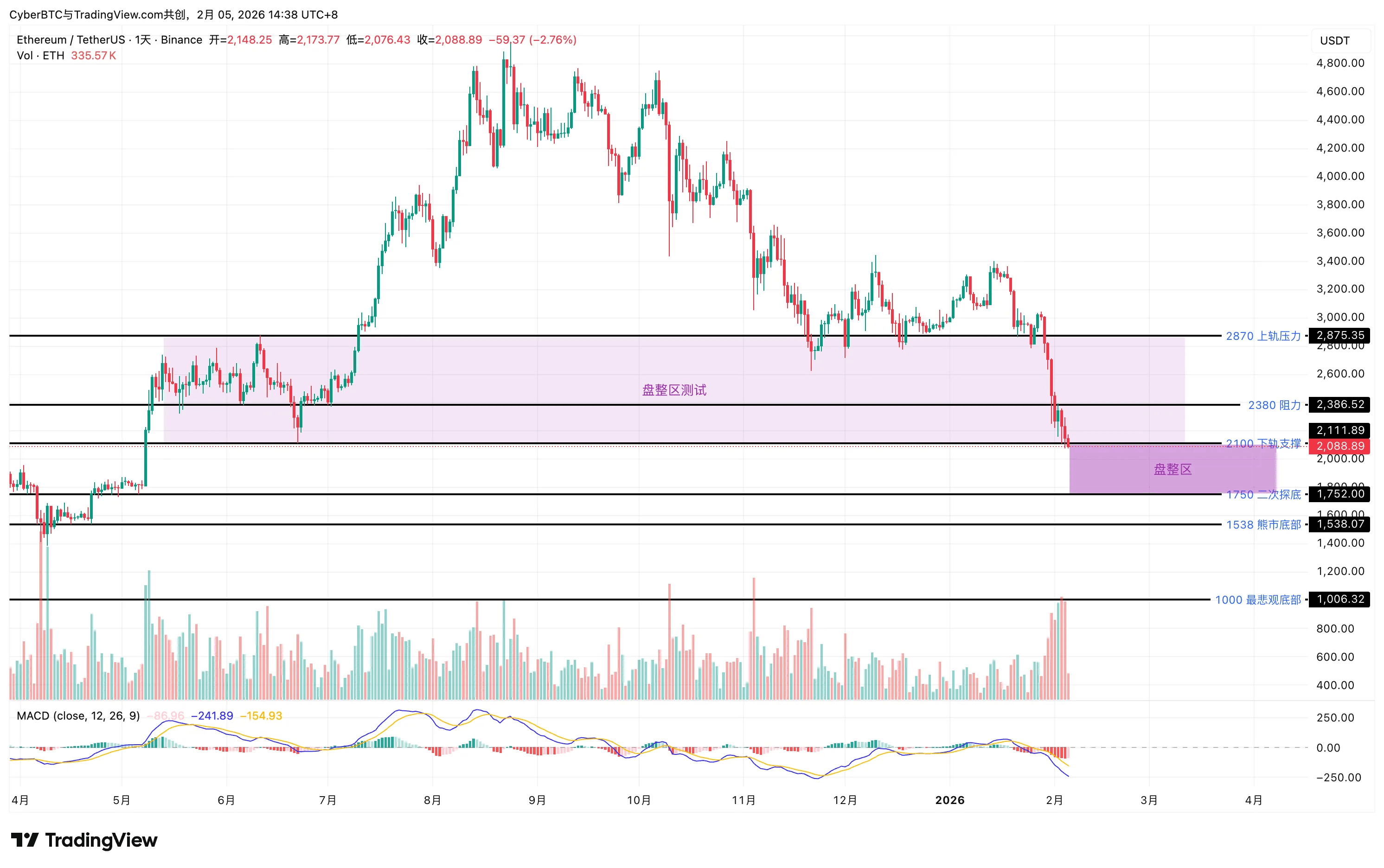 • 支撑位:1,750美元,1,538美元(基于历史结构的推测性支撑)