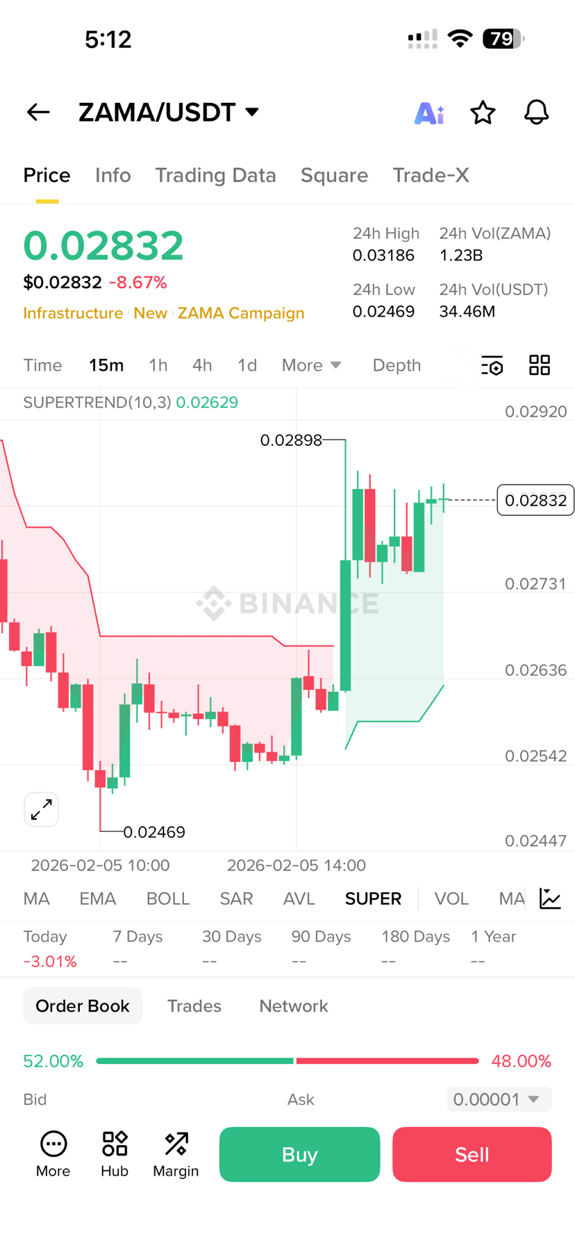 Price is sitting close to an important support zone around 0.027. This level matters a lot. If ZAMA holds here, we may see some stabilization or a bounce. But if this level breaks with volume, price could slide further before finding real demand.