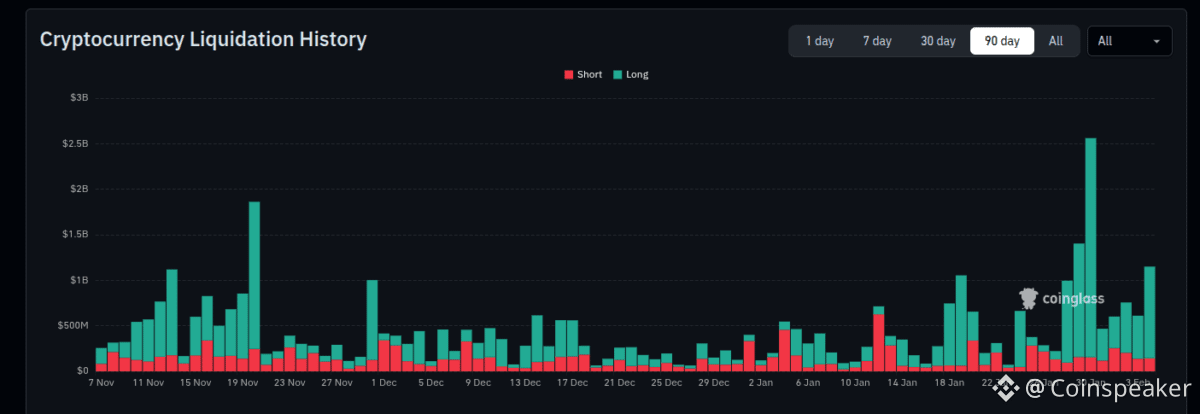 Cryptocurrency liquidation history (90D), as of Feb. 5, 2026 | Source: CoinGlass