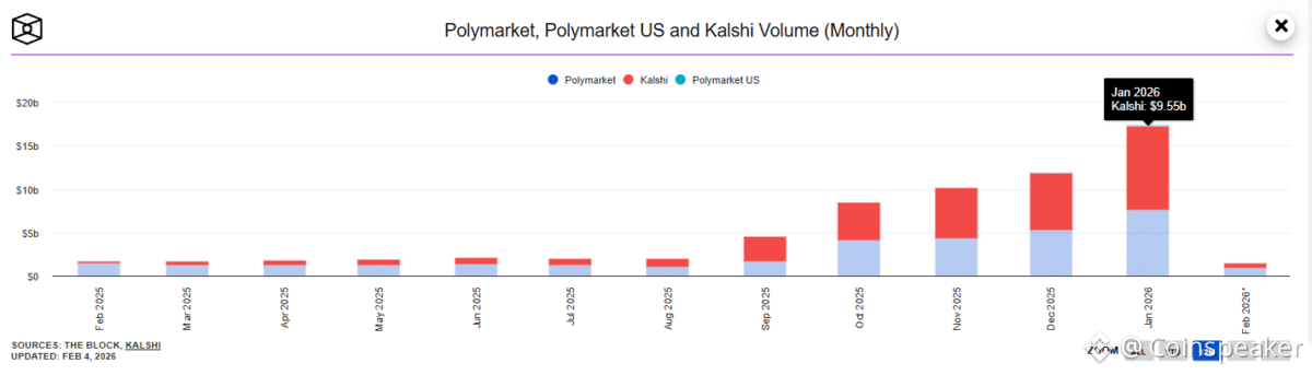 Monthly volume for Polymarket and Kalshi | Source: The Block data