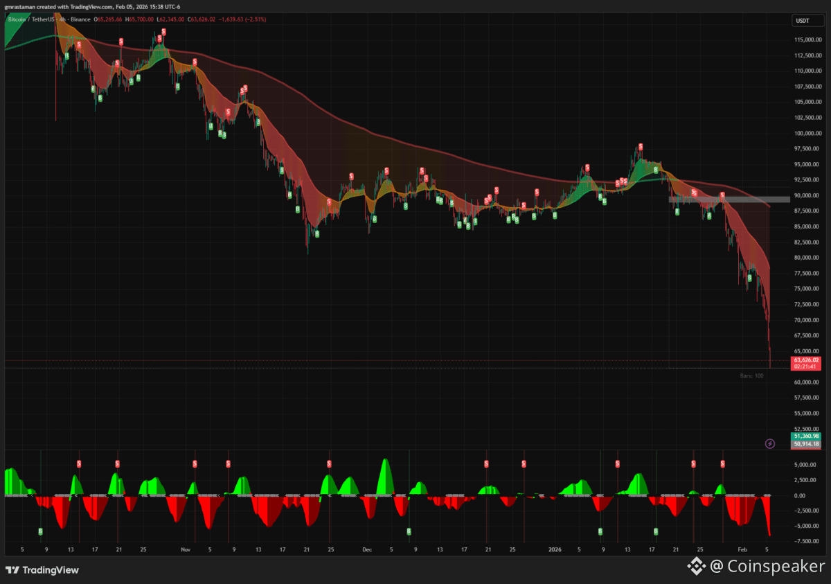 Wednesday’s trading session turned into a bloodbath for crypto markets, compounding Strategy’s problems. Bitcoin BTC $63 911 24h volatility: 12.1% Market cap: $1.28 T Vol. 24h: $140.30 B tumbled from near $73,3400 to an intraday low of $62,345—the weakest level since November 2025. The hourly chart shows relentless selling that shattered every intermediate support level, with prices shedding over $25,000 from the three-month highs. The daily decline topped 12.80%, trapping countless investors in underwater positions and triggering cascading liquidations across derivatives markets.