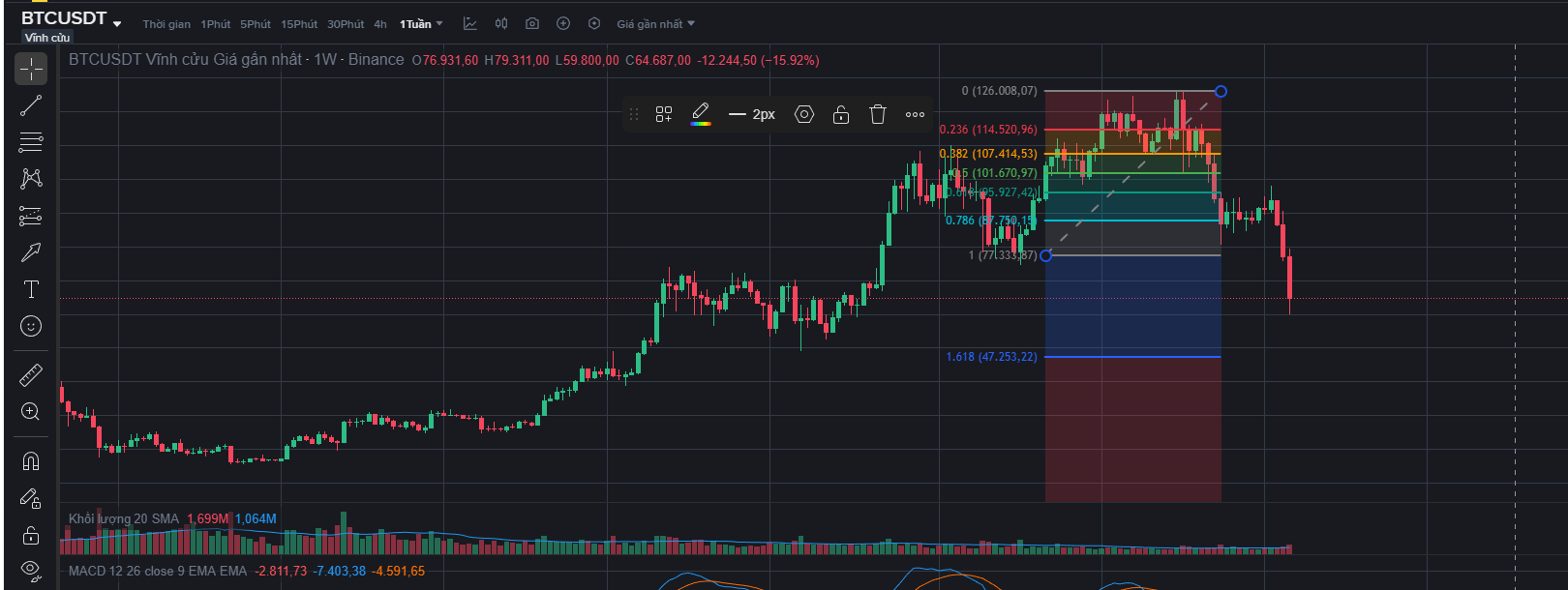 Fibonacci Retracement là công cụ dùng để xác định các vùng hỗ trợ và kháng cự tiềm năng khi giá điều chỉnh trong một xu hướng chính. Sau mỗi nhịp tăng hoặc giảm, thị trường thường có những pha hồi lại trước khi tiếp diễn xu hướng.