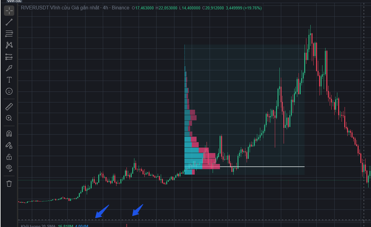Chỉ báo này hiển thị dưới dạng các thanh (rectangle) dọc theo trục giá, trong đó độ rộng thể hiện khối lượng giao dịch tại từng vùng giá, giúp nhận diện nhanh những khu vực giá có ý nghĩa cao.