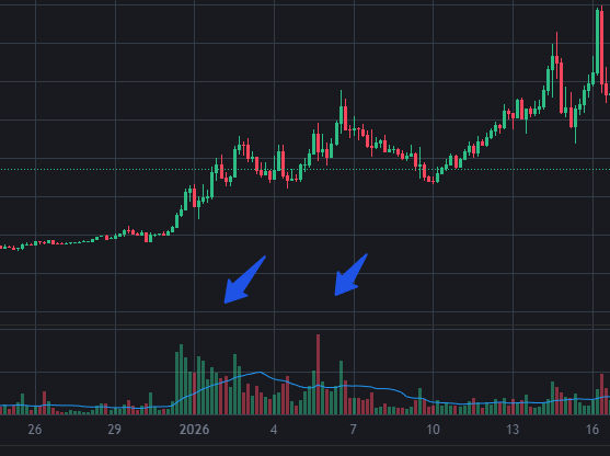 Qua chart ta thấy rõ ràng, hoạt động giao dịch của đồng coin này trong thời gian này có xu hướng tăng lên và giá cũng tương tự.
