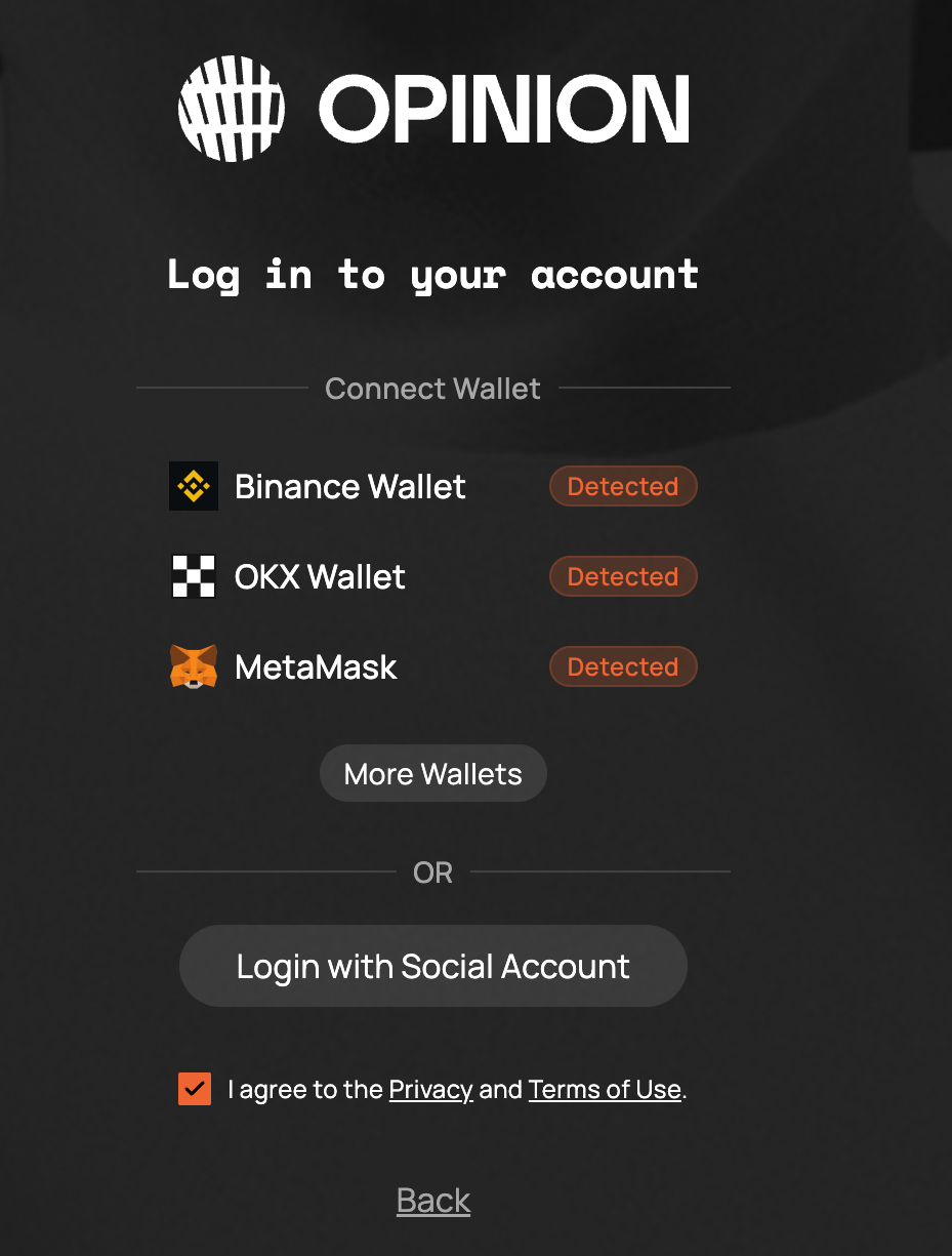 打开活动页面 https://app.opinion.trade/tasks 配合币安最近在推的浏览器插件登录还是比较顺利的。