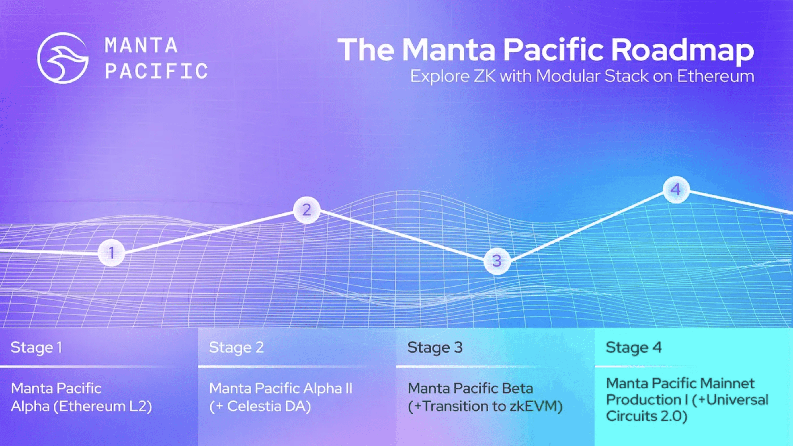 在 Manta Pacific 主网推出后,该项目揭示了一个全面的四阶段路线图,旨在指导其在主网推出后的发展轨迹。团队计划与更广泛的Manta Network生态系统和社区共同努力,实现每个关键阶段。目前,Manta Pacific 已经成功完成了第二阶段,作为一个使用 Celestia 进行 DA 的 OP Stack rollup。即将到来的全面过渡到使用 Polygon CDK 的 zkEVM validium,是2024年的一个关键目标。