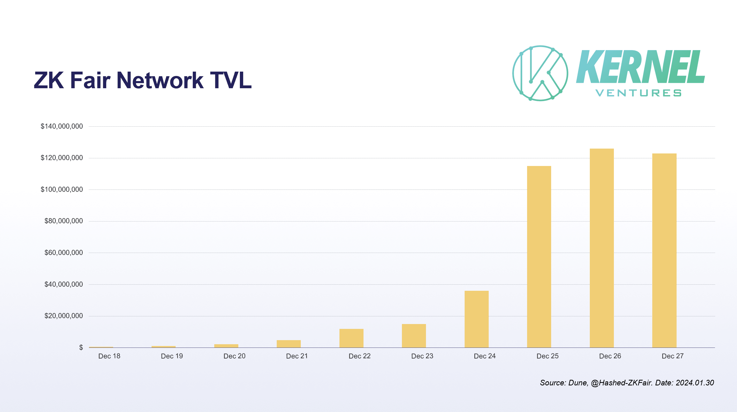 ZK Fair TVL 增长趋势,图片来源:Kernel Ventures