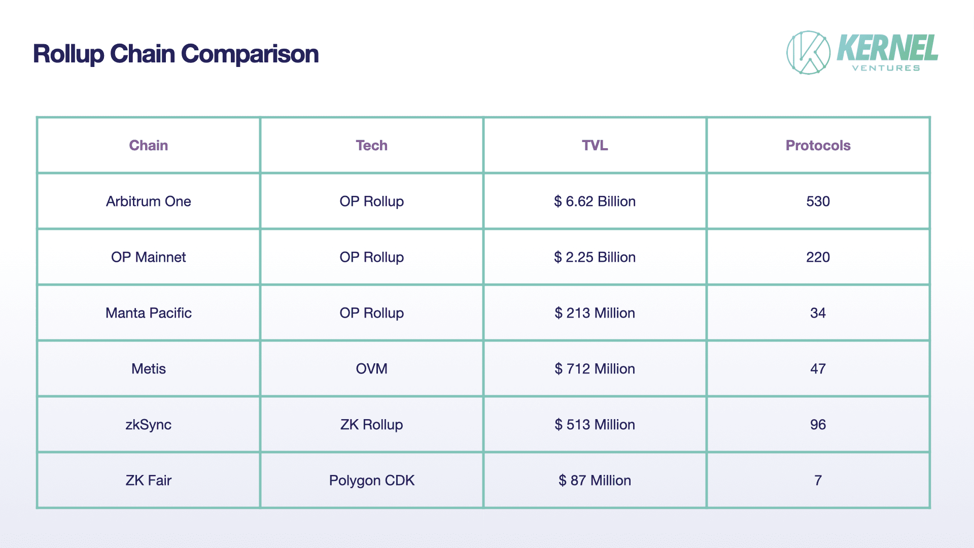 Rollup Chain Data Comparison, Image Source: Kernel Ventures