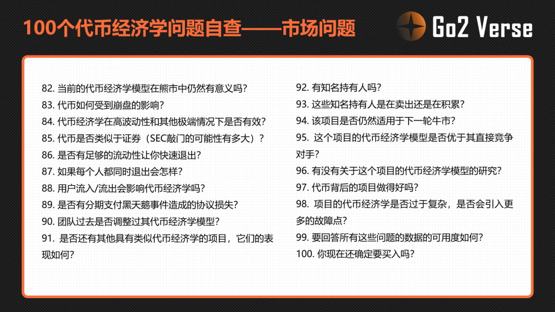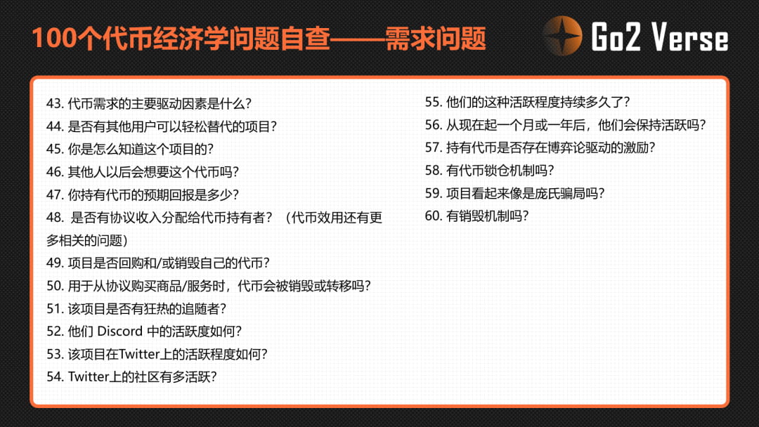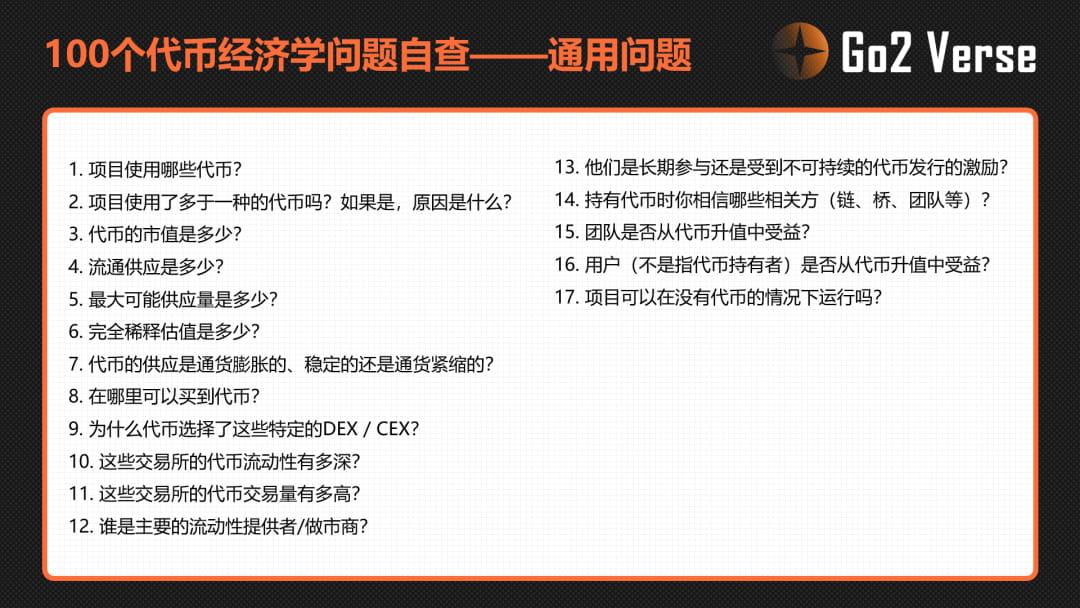 代币经济学的100个问题自查