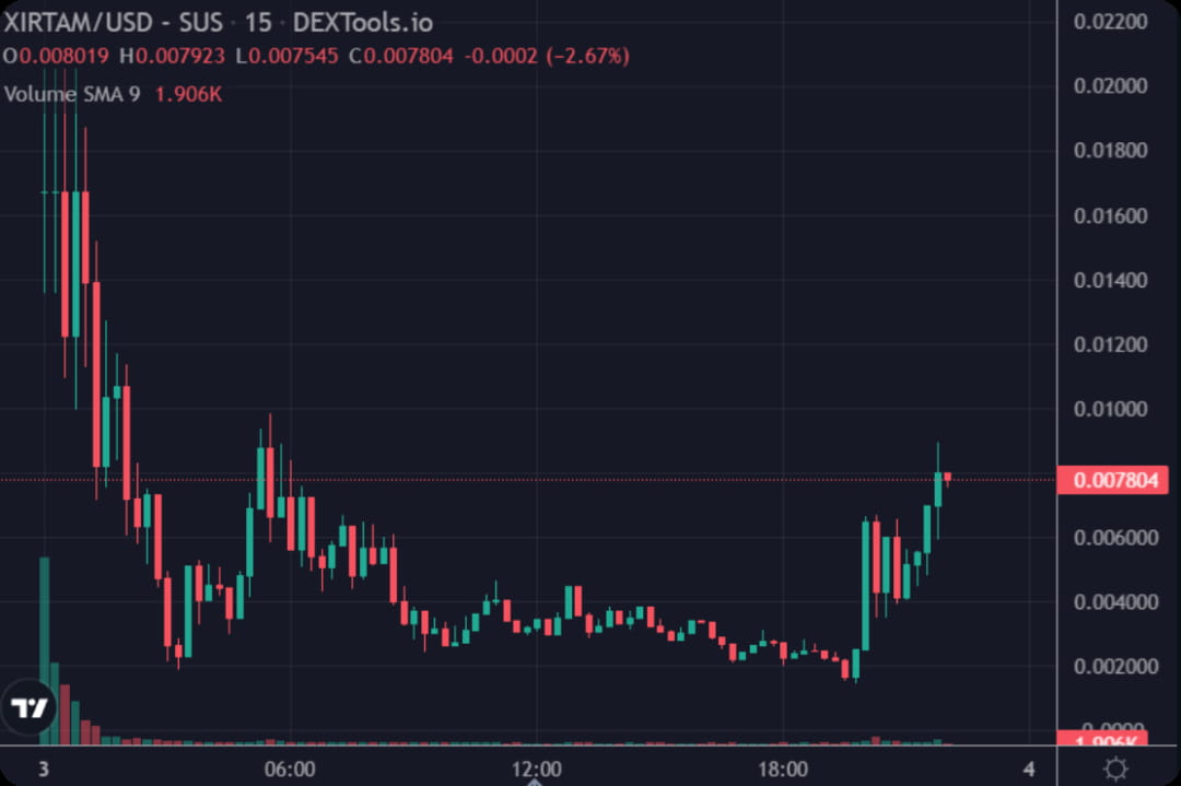 2023年5月3日,当大众还在享受着五一假期的余温时,对于许多加密圈的朋友而言,这个夜晚并不轻松。在这个深夜里,很多投资者都没有料到,近期被KOL各种喊单的“金狗”XIRTAM——从凌晨上架SushiSwap,再到0.02 美元跌至 0.0018 美元,市值暴跌90%仅用几小时的时间,堪称加密界的BitRun。目前经多方验证,可以确认为包装成老外的国人盘。