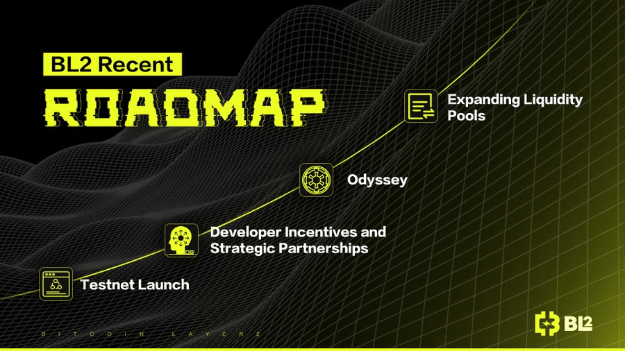 BL2's official X account has been updated daily, and it has also announced its development plan and token program, which will allocate 20% of its tokens to OG Mining, as well as the launch of a testnet in the near future. At this stage, the project is relatively new compared to other Bitcoin Layer2 and in its early stage, with only 33,000 followers on X. It's worth paying attention to as it introduces some of the more recent concepts such as Celestia and Bitcoin Layer2. However, there are no actual technical details on the website, with only a demo of what to expect, and no whitepaper for the project. At the same time, the goals are quite big, such as the abstraction of accounts on Bitcoin and compatibility with the VM protocol of mainstream virtual machines. Whether the team will be able to achieve this goal is still questionable, so we will consider taking a more reserved approach.