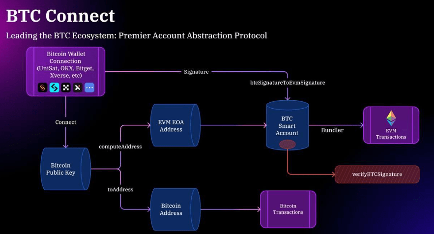 BEVM is an EVM-compatible POS side chain that has yet issued its own native token. It uses Schnorr's multisig algorithm on the Bitcoin network to store incoming assets in a multisig script address controlled by 1,000 addresses, which corresponds to the 1,000 POS verifiers on BEVM. The automated control of assets can be achieved by writing MAST (Merkelized Abstract Syntax Tree) scripts in the TapScript area, where the program is described in a number of independent chunks, each of which corresponds to a portion of the code logic, with no need to store a large amount of logic in the Script, only the hash result of each chunk. That has greatly reduced the amount of code that needs to be stored on the blockchain. When a user transfers BTC to BEVM, this part of BTC is locked by the script program, and the locked BTC can only be unlocked and sent back to the corresponding address if signed by more than 2/3 of the verifiers. BEVM is EVM compatible, so that allows for cost efficient migration of dApps originally built on Ethereum, trading with the above BTC-pegged assets while using it for gas expenses.