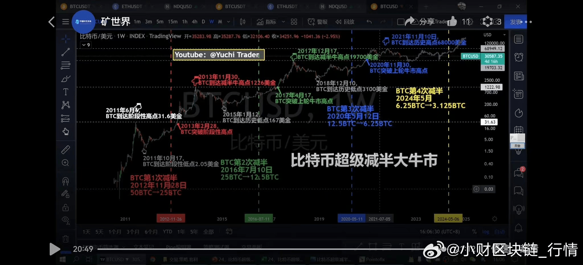 然而,事情远不止于此:比特币可以说是世界上最稀缺的资产。确实,它是数字形式的,但它比黄金稀缺得多。人们很自然地预计其价格将比黄金上涨得更快,在过去 100 年里,黄金从 20 美元上涨到 2,350 美元。最后,如果您打算投资比特币,请记住它仍然是一种不稳定的资产。#比特币减半 #大盘走势