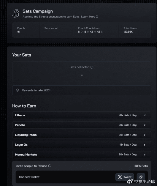在这次活动中,之前获得的活动奖励“碎片”被替换为"Sats”。如果用户在第一季已经锁定了自己的USDe并且不再去增加新的USDe,那么他们就能够获得额外的奖励。