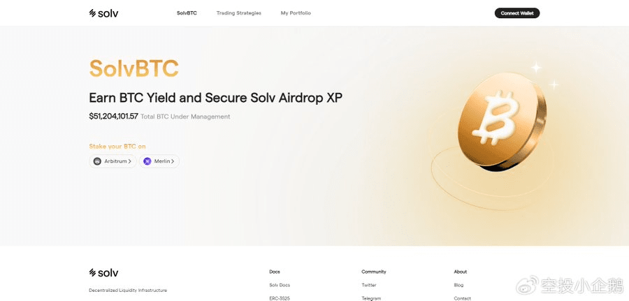 值得注意的是,目前存入的资金在六月前无法被赎回,六月后将开放第一次赎回。同时,目前不会产生利息收益,仅仅会有$Solv的空投。项目方想要先确保TVL的稳定增长,并完善底层的安全机制后再给用户提供利息收益(预计三个月)。