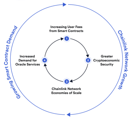 Chainlink’s cryptoeconomics aims to create a feedback loop in which increased user fees incentivize node operation, which, in turn, leads to more data being put on chain.