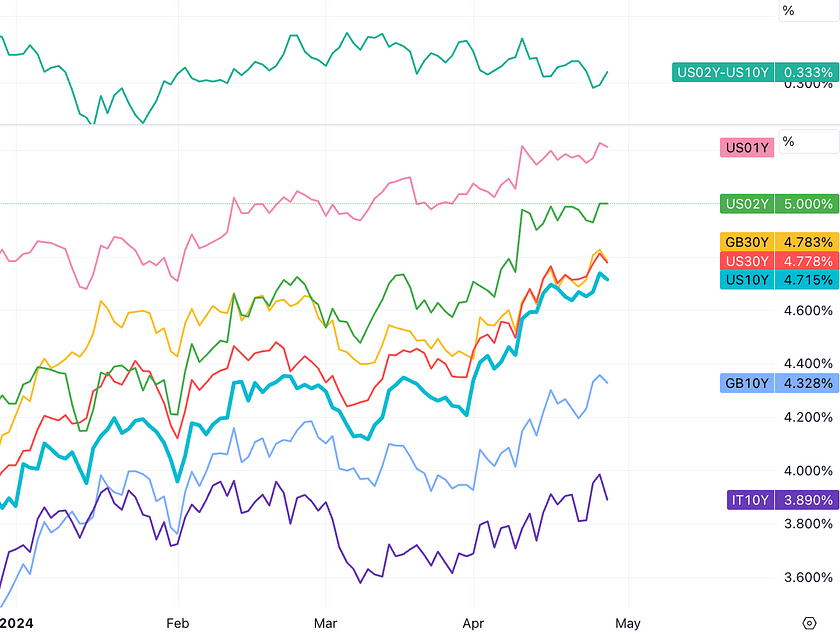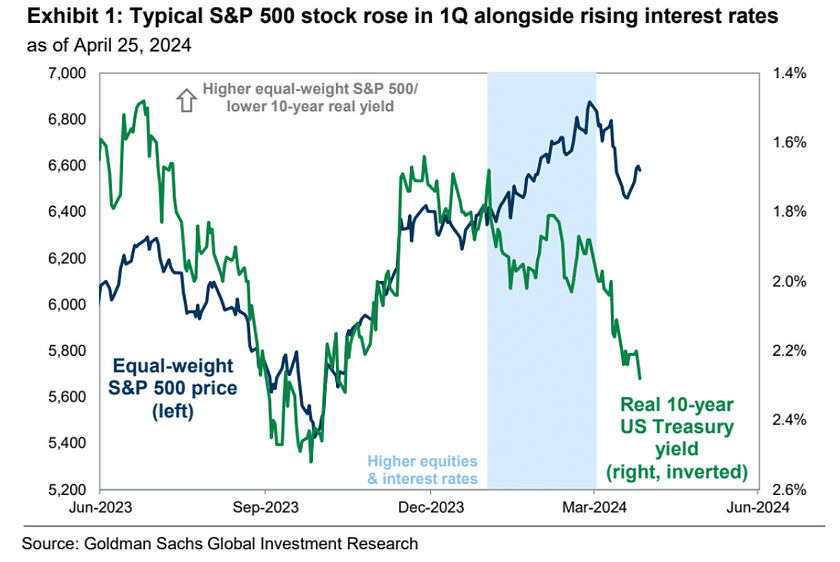 七巨头的利润预计第一季度将同比增长 47%,轻松超过标普500 指数 2% 的预期盈利增长。上周公布业绩的四家公司中,有三家股价上涨(特斯拉、Alphabet、微软),其中 Alphabet 表现突出并首次宣布派息。但之前一直表现强势的 Meta 股价下跌,因为该公司公布了低于预期的收入预测,同时瞄准了更高的资本支出来支持人工智能。